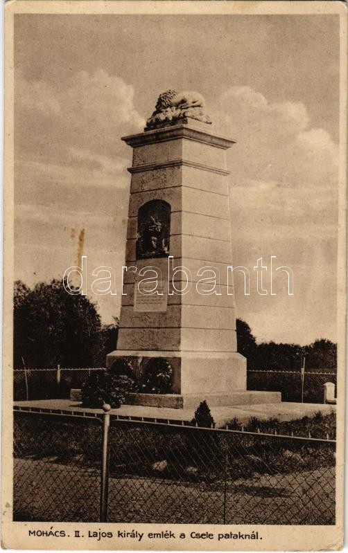 Mohács, II. Lajos király emlékmű a Csele-pataknál (EK) https://www.darabanth.com/hu/375-Gyorsarveres/375.0/Kepeslapok/Magyarorszag~1500005/Mohacs-II-Lajos-kiraly-emlekmu-a-Csele-pataknal-EK~II2194141