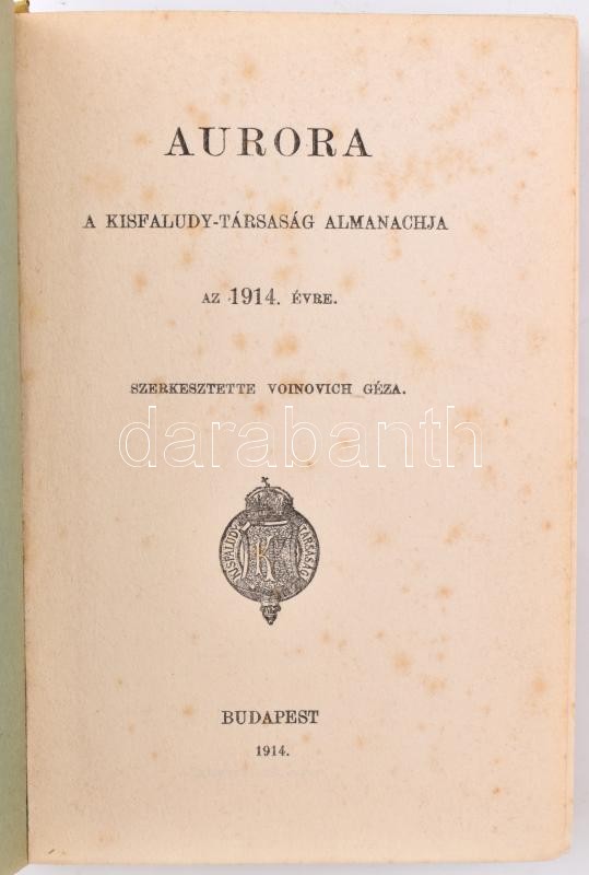 Leírás: Aurora. A Kisfaludy-Társaság almanachja az 1914. évre. Szerk.: Voinovich Géza, Bp., 1914.,vászonkötéses