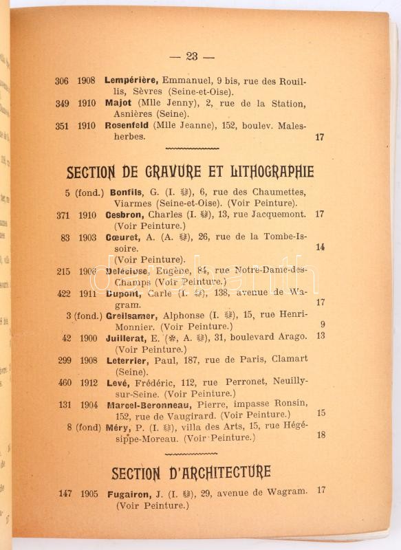 Leírás: Salon d'Hiver. 1913. Francia nyelvű képes kiállítási katalógus. Paris., 1913, Coquemer Imp. Kiadói papírkötés, a gerincén szakadással.