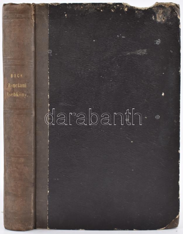 [Bock, Carl Ernst (1809-1874)] Prof. Dr. C. E. Bock: Bonctani zsebkönyv. Ford.: Schmidt György. Lenhossék József előszavával. Pest, 1862., Trattner-Károlyi, 572 p. Átkötött félvászon-kötésben, kopott borítóval, az elülső kötéstáblán sérüléssel, foltos lapokkal.