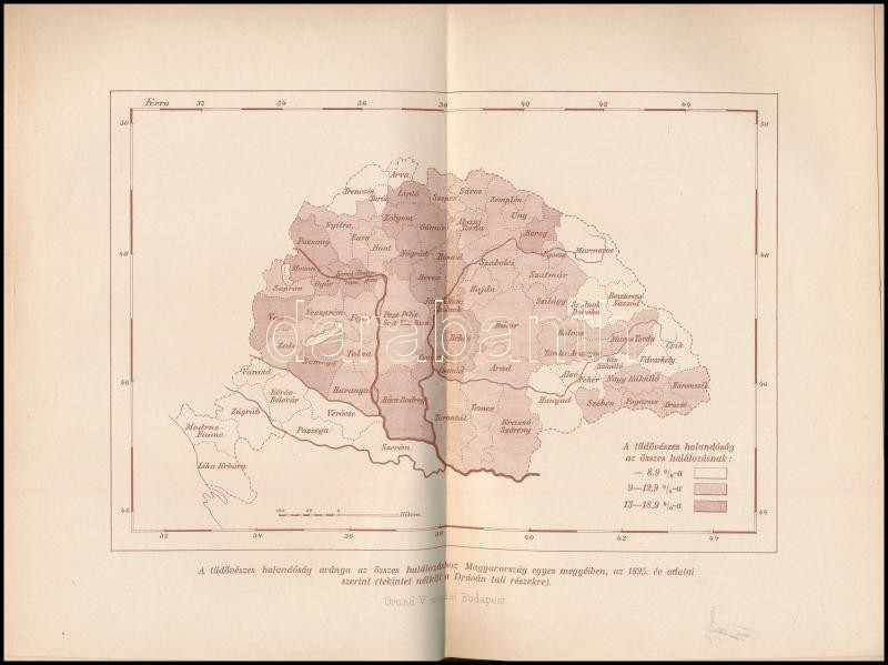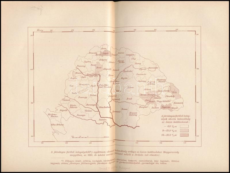 Kuthy Ferenc: A tüdővész szanatóriumi gyógyítása. A higiénés-diétás terápiáira tekintettel a szegénysorsú tüdővészesek ügyére. Korányi Frigyes előszavával. E. P. León-Petit bevezetőjével. Magyar Orvosi Könyvkiadó-Társulat Könyvtára LXXVII kötet. Bp., 1897., Magyar Orvosi Könyvkiadó Társulat, 2+IX+299 p. + 2 (két kétoldalas térkép) t. Szövegközti és egészoldalas fekete-fehér fotókkal illusztrált. Kiadói aranyozott egészvászon-kötés, Gottermayer-kötés, kissé kopott borítókkal.