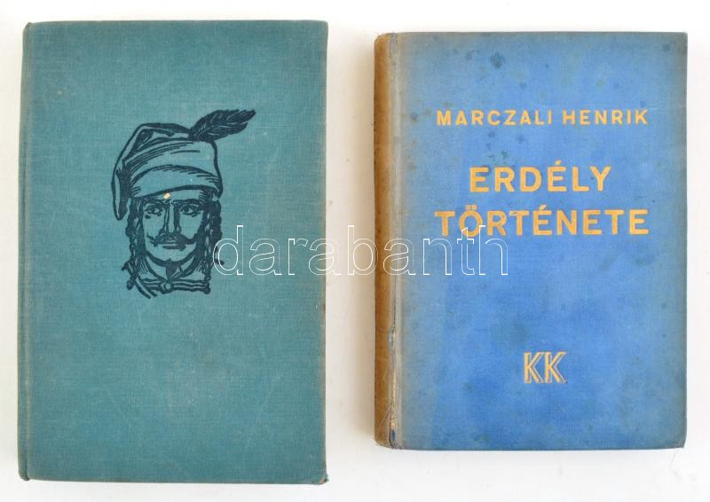 Vegyes könyv tétel, 2db: Marczali Henrik: Erdély története. Bp., 1935, Káldor. 288 p. Kiadói aranyozott egészvászon-kötésben, a gerinc kissé kifakult, néhány helyen jelölések ceruzával.+ Fábián Gyula: Hej, Rákóczi, Bercsényi, Bezerédj! Bp., én., a Magyar Könyvbarátok kiadása. Könyvbarátok Kis Könyvei, IV. évf. 3. sz. Horváth Jenő rajzaival illusztrálva. Kiadói egészvászon-kötés. Kissé megfakult borító, tulajdonosi névjegyzéssel.
