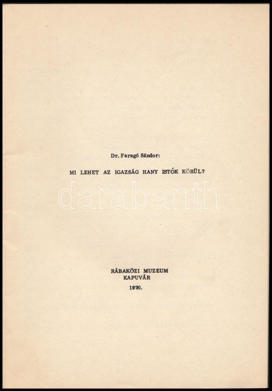 Leírás: dr. Faragó Sándor: Mi lehet az igazság Hany Istók körül. Kapuvár, 1970. Rábaközi múzeum 35p.
