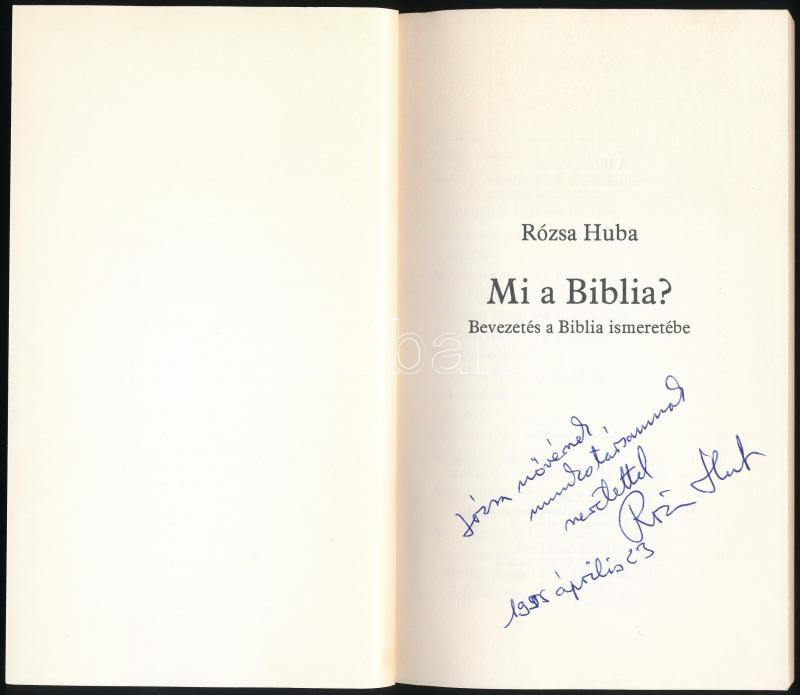 Rózsa Huba: Mi a biblia? Bevezetés a biblia ismeretébe. Bp., 1995, Jel kiadó. A szerző, Rózsa Huba (1939-) római katolikus pap, pápai prelátus, pápai protonotárius, teológus által dedikált és dátumozott! Kiadói papírkötés.