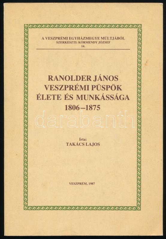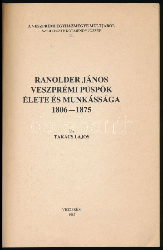 Takács Lajos: Ranolder János veszprémi püspök élete és munkássága 1806... https://www.darabanth.com/hu/375-Gyorsarveres/375.0/Konyvek/Konyvek-Vallas~1000013/Takacs-Lajos-Ranolder-Janos-veszpremi-puspok-elete-es-munkassaga-1806-1875-A-veszpremi-e~II2196356