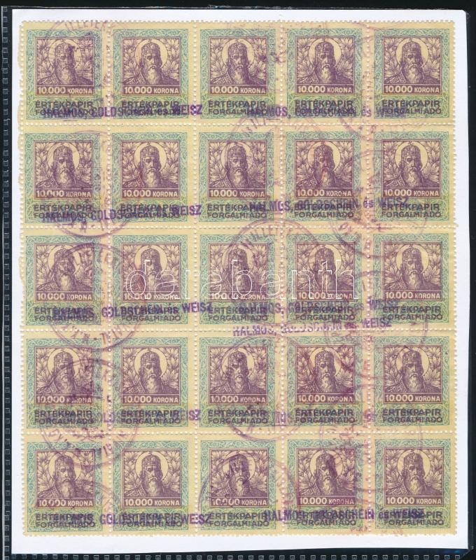 Leírás: Halmos-Goldstein-Weisz bélyegzett értékpapír forgalmi adóbélyeg ívdarab (25 db)