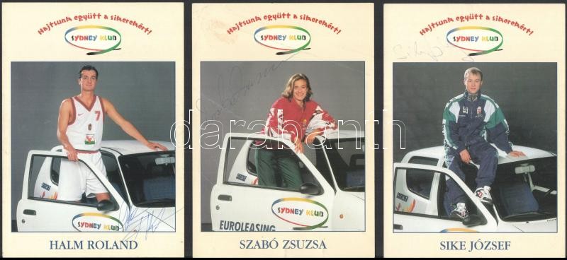 Leírás: Sydney Klub levelezőlapok, rajtuk 12 aláírással magyar olimpikon sportolóktól, Darnyi, Gyulay, Fábián, stb