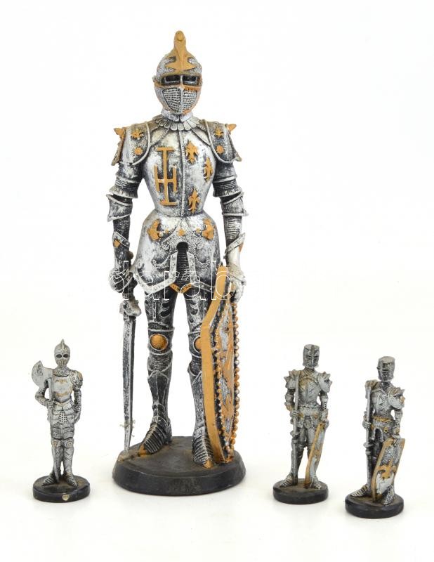 Leírás: 4 db lovag figura, részben festettek, 7,5x2,5 cm és 22,5x6,5 cm közötti méretekben