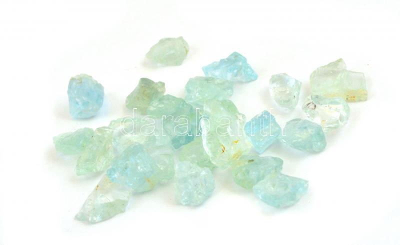 Leírás: Akvamarin, 25 db, ~1x1,5 és ~0,5x0,8 cm közötti méretben