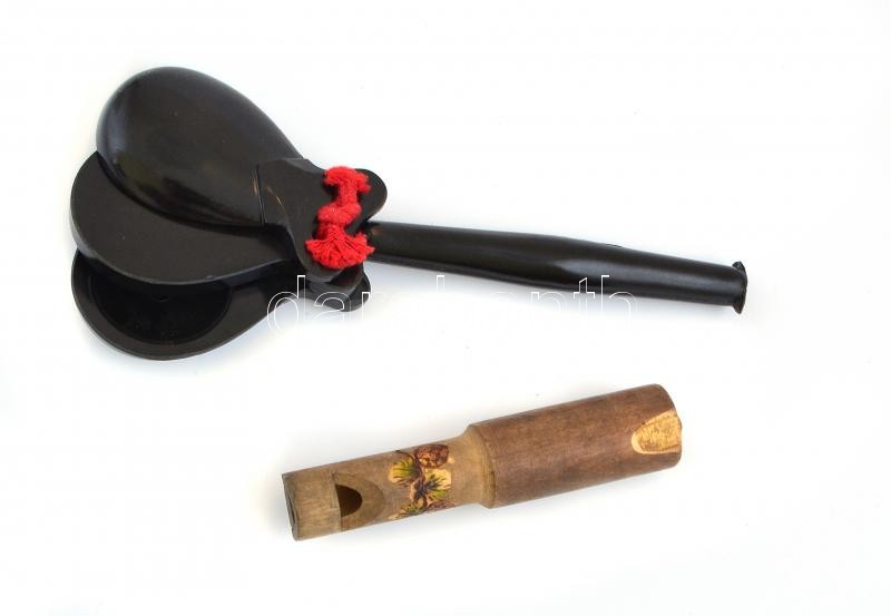 Leírás: Fa síp és kasztanyetta 10 cm, 17 cm