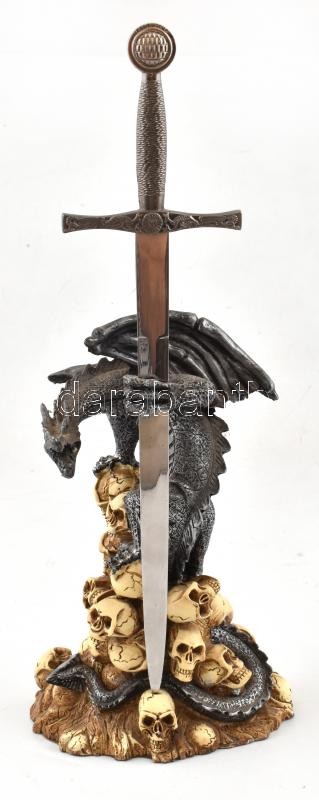 Fém sárkány koponyákon, kivehetős karddal, 39,5x16 cm https://www.darabanth.com/hu/375-Gyorsarveres/375.0/Mutargy-papirregiseg-egyeb/Bolhapiac~500011/Fem-sarkany-koponyakon-kivehetos-karddal-39-5x16-cm~II2195986