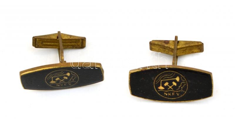 Leírás: NKFV (Nagyalföldi Kőolaj- és Földgáztermelő Vállalat) feliratú mandzsetta gomb pár, 2,5x2,5 cm