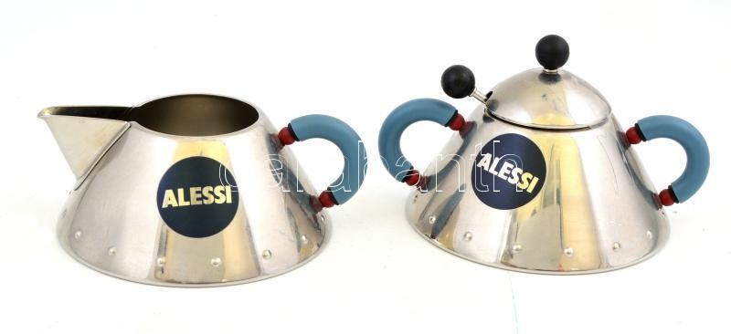 Leírás: Olasz Alessi inoxfém kiöntő és cukortartó, jó állapotban, 5,5x10,5 és 7,5x10,5 cm
