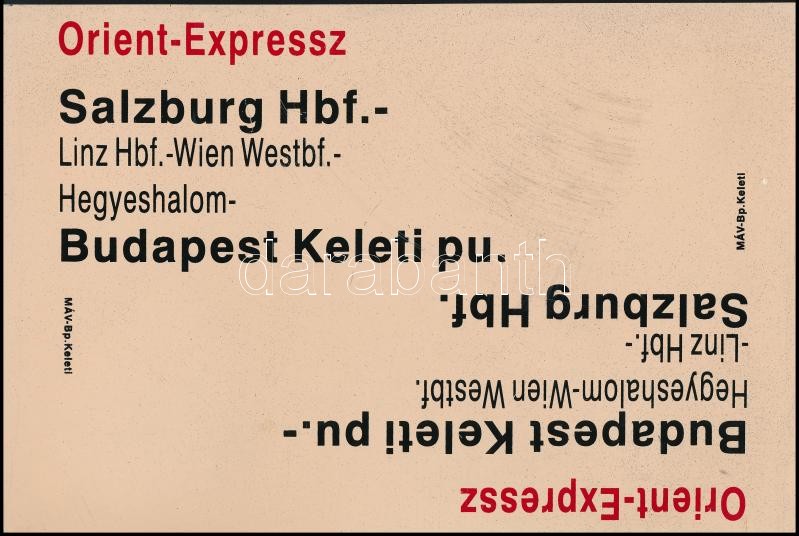 Orient-Expressz vasúti kocsitábla, 20x30 cm https://www.darabanth.com/hu/375-Gyorsarveres/375.0/Mutargy-papirregiseg-egyeb/Bolhapiac~500011/Orient-Expressz-vasuti-kocsitabla-20x30-cm~II2197002