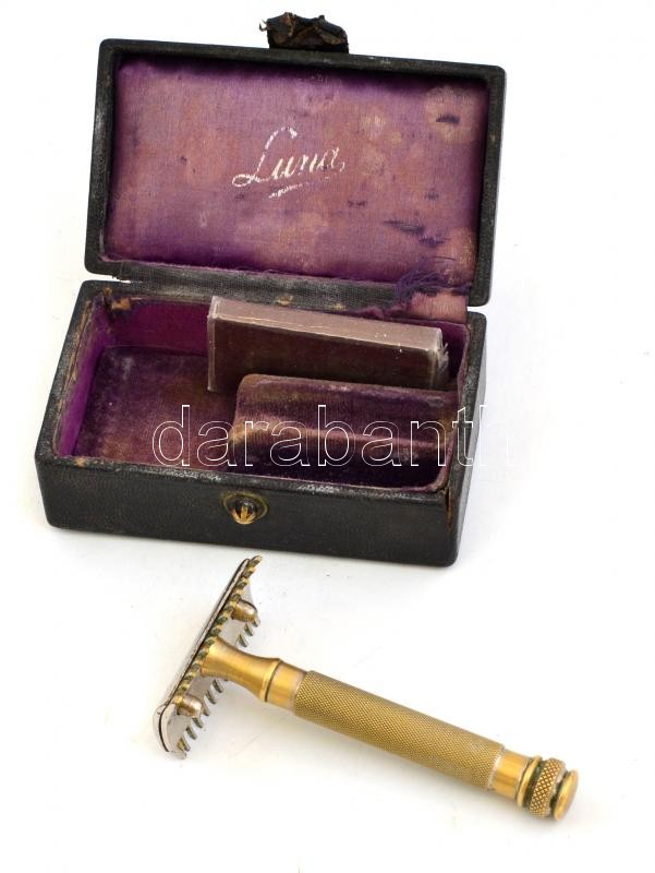 Leírás: Pengés borotva Erdős Vilmos feliratú dobozban, doboz kopottas állapotban, h: 8,5 cm