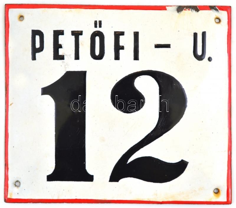 Leírás: Petőfi u 12 zománcozott házszám tábla 15x13 cm Kis kopással