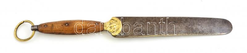 Leírás: Régi kés fenő. Réz, acél, fa. 34 cm