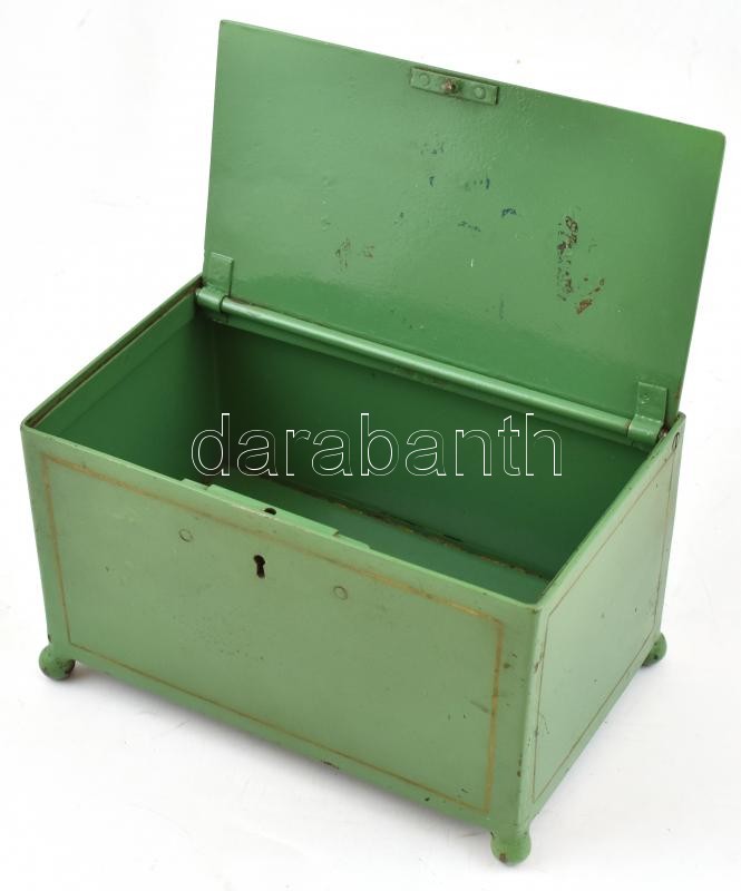 Leírás: Régi páncélkazetta kulcs nélkül, kopottas állapotban, 12,5x12x20,5 cm