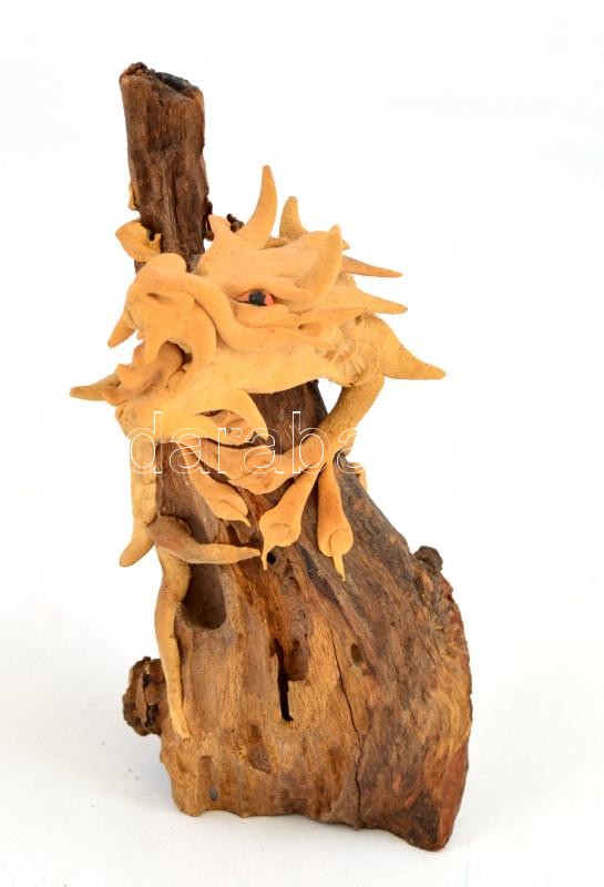 Leírás: Sárkány figura sziklán, festett szemmel, vegyes technika, m: 16 cm