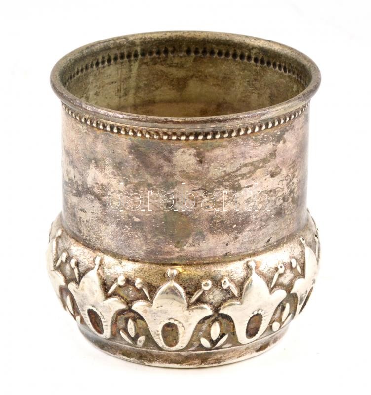 Leírás: Tulipán mintás alpakka kaspó, alján jelzett, m: 8,5 cm