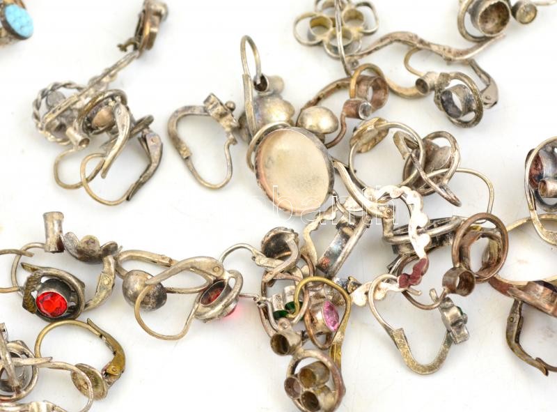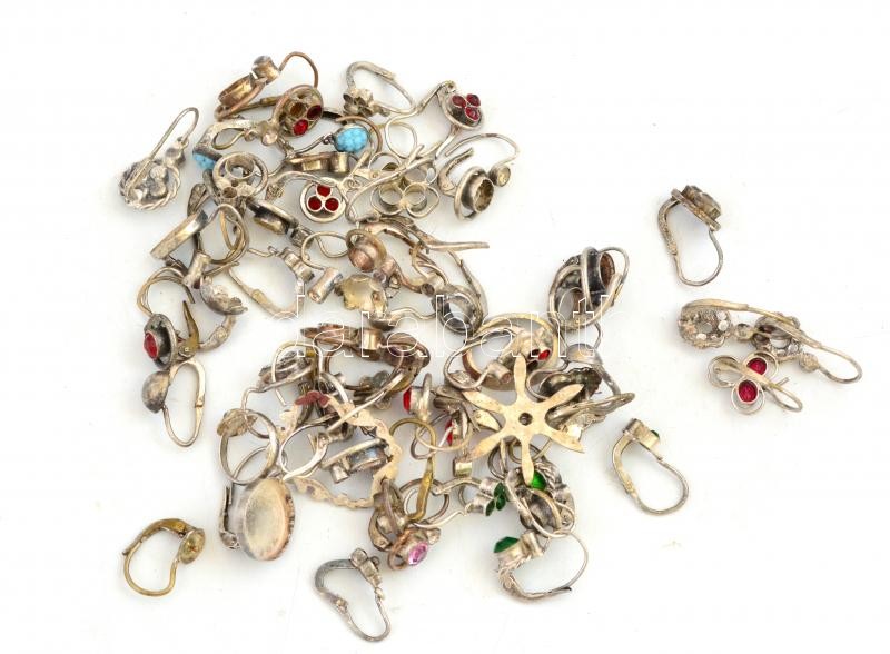 Leírás: Zacskónyi fülbevaló és fülbevaló alkatrész, némely hiányzó kövekkel