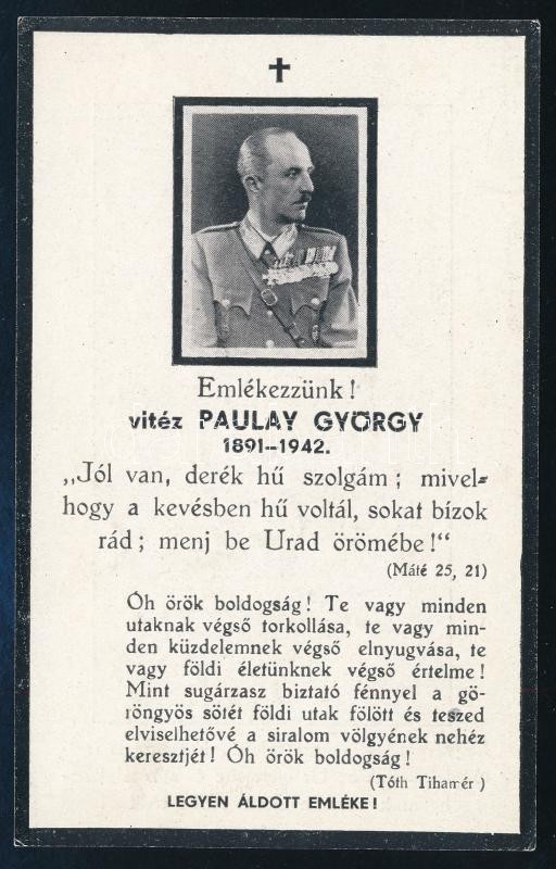 Vitéz Paulay György (1891-1942) gyászjelentése, a képen sok kitüntetés... https://www.darabanth.com/hu/375-Gyorsarveres/375.0/Mutargy-papirregiseg-egyeb/Militaria~2000022/Vitez-Paulay-Gyorgy-1891-1942-gyaszjelentese-a-kepen-sok-kituntetessel-dekoralt~II2194966