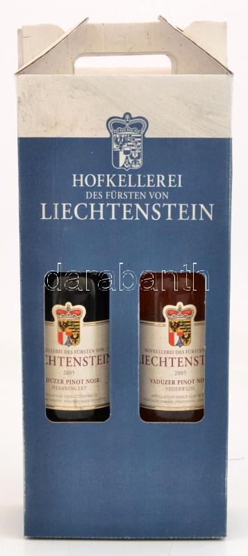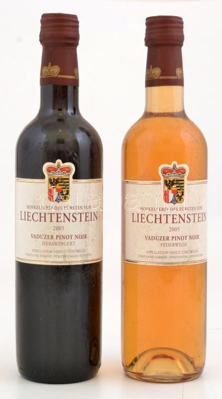 Leírás: 2005 Hofkellerei des Fürsten von Liechtenstein Vaduzer Pino Noir vörösbor és rozé bor, díszdobozban, 0,5 l x2