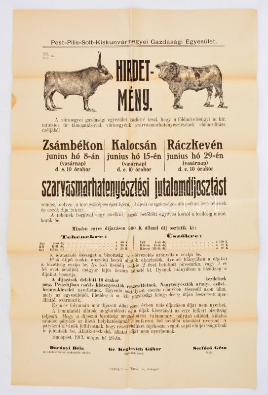 Leírás: 1913 Marhavásár hirdetmény 35x50 cm