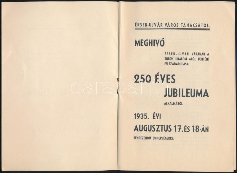 1935 Meghívó Érsekújvár várának a török uralom alól történet felszabad... https://www.darabanth.com/hu/375-Gyorsarveres/375.0/Mutargy-papirregiseg-egyeb/Nyomtatvanyok~500032/1935-Meghivo-Ersekujvar-varanak-a-torok-uralom-alol-tortenet-felszabadulasa-250-eves-j~II2203028