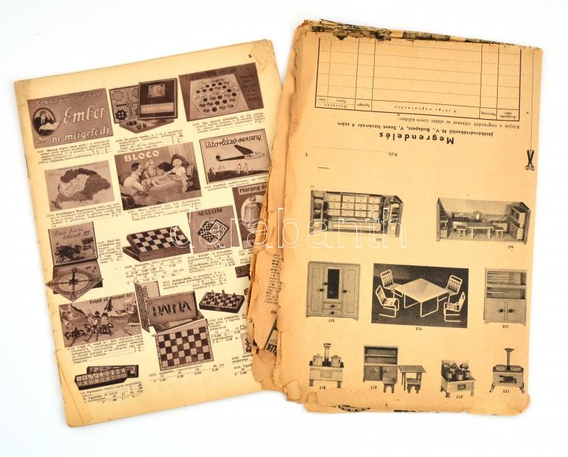cca 1930-1960 Játékok képes árjegyzéke, 2 db, sérült https://www.darabanth.com/hu/375-Gyorsarveres/375.0/Mutargy-papirregiseg-egyeb/Nyomtatvanyok~500032/cca-1930-1960-Jatekok-kepes-arjegyzeke-2-db-serult~II2201525