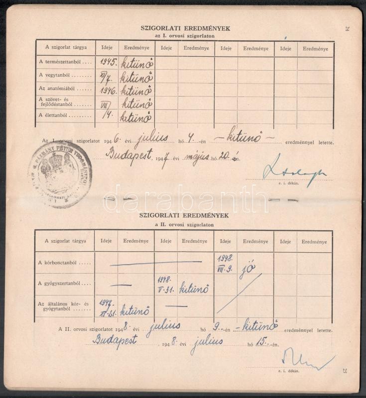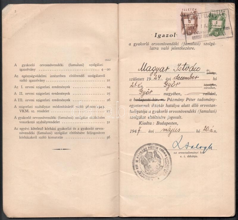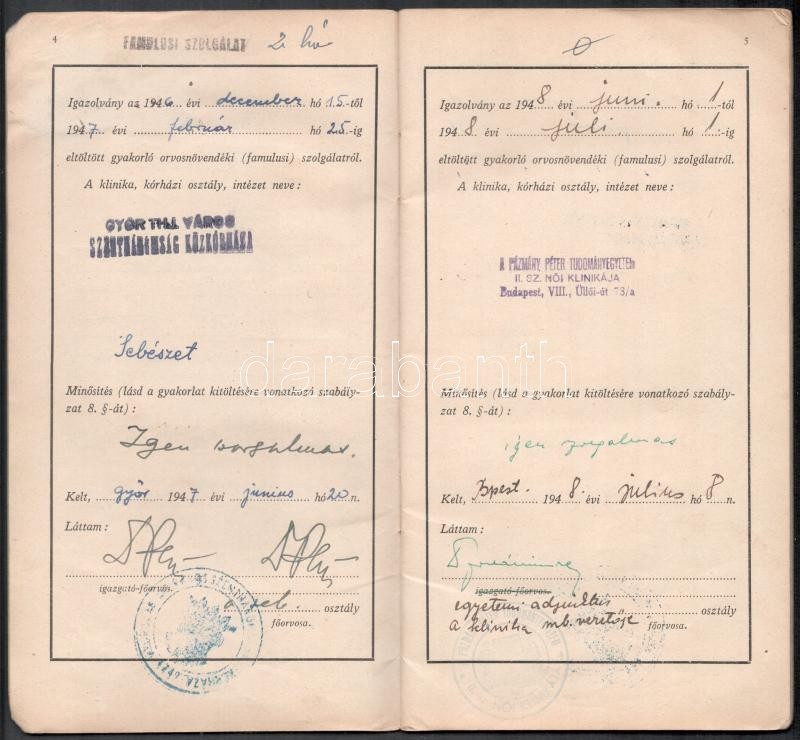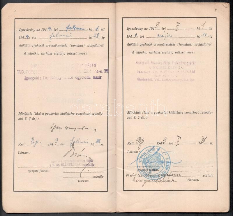 1949 Gyakorló orvosnövendéki szolgálati könyvecske https://www.darabanth.com/hu/375-Gyorsarveres/375.0/Mutargy-papirregiseg-egyeb/Okmanyok~500018/1949-Gyakorlo-orvosnovendeki-szolgalati-konyvecske~II2193607
