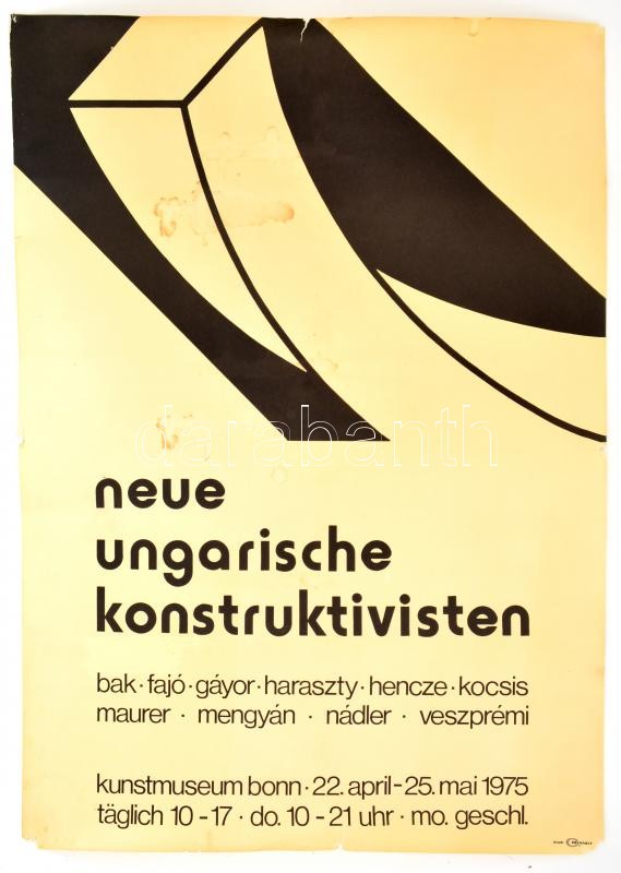 1975 "Neue Ungarische Konstruktive" Kiállítási Plakát, szitanyomat, Ná... https://www.darabanth.com/hu/375-Gyorsarveres/375.0/Mutargy-papirregiseg-egyeb/Plakat~2000023/1975-Neue-Ungarische-Konstruktive-Kiallitasi-Plakat-szitanyomat-Nadler-Istvan-grafikajav~II2195405