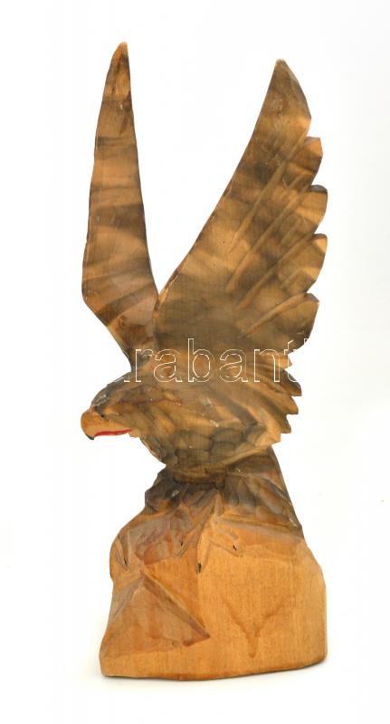 Leírás: Faragott fa turul szobor, részben kézzel festett, m: 31 cm
