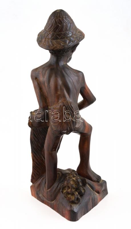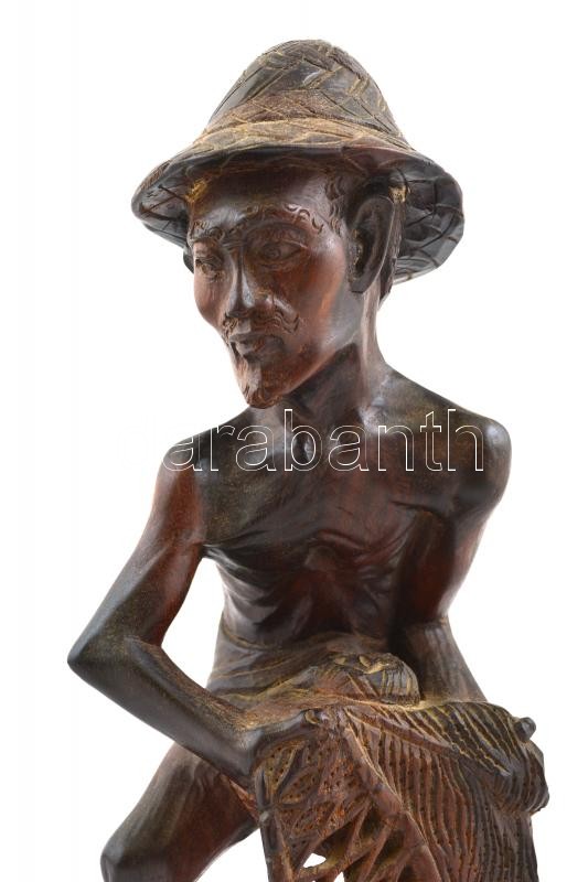 Leírás: Halász faragott fa szobor. Lakkozott keményfa 33 cm