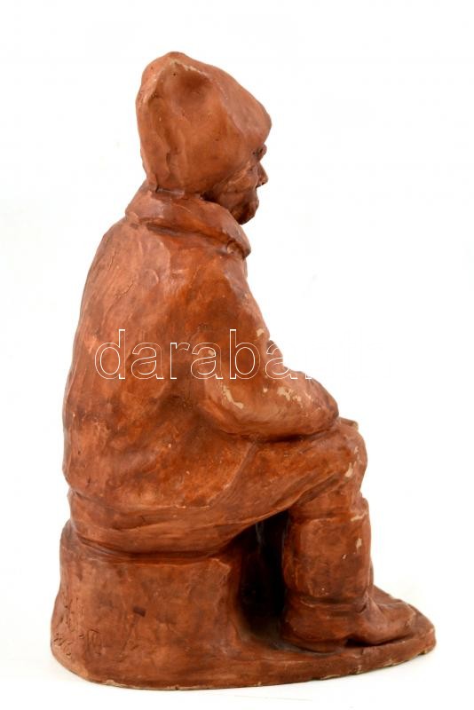 Leírás: Orbán Judit: Zsákos ember. Festett gipsz szobor. Jelzett, lepattanásokkal. 30 cm