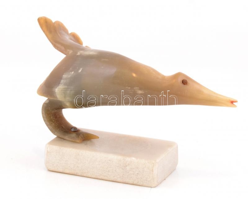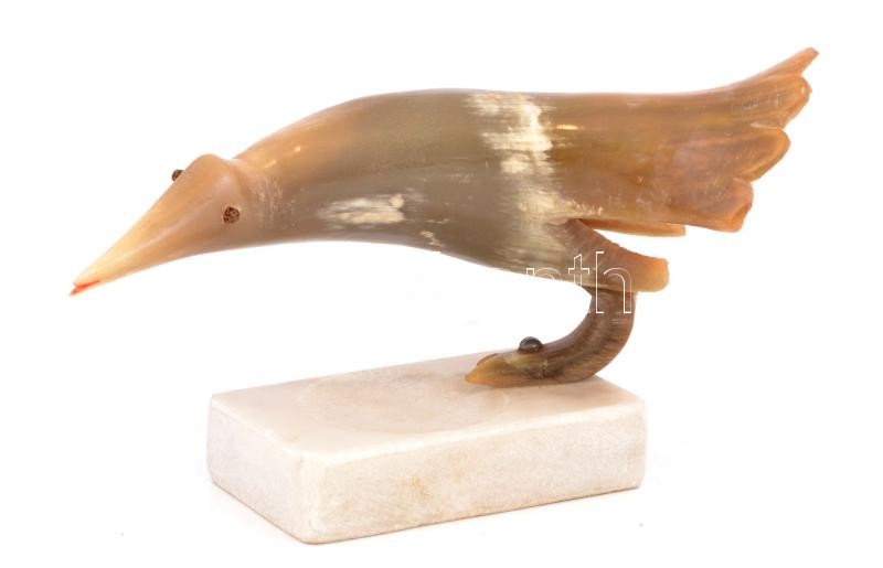 Leírás: Szaruból készült madár figura, alabástrom talapzattal, 12x20 cm