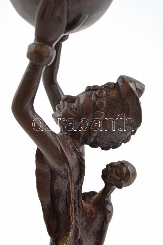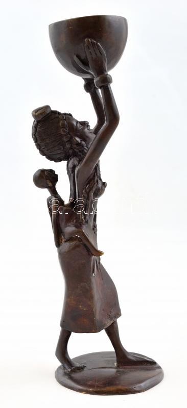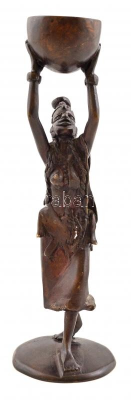 Leírás: Tálat vivő bennszülött, bronz figura, alján jelzett, m: 21 cm