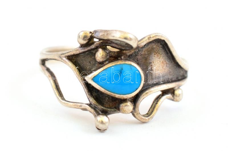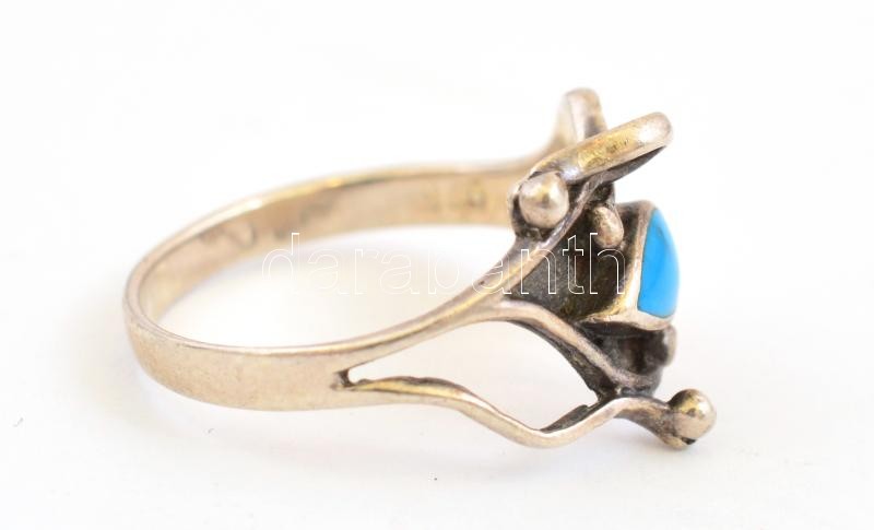 Leírás: Ezüst(Ag) gyűrű kék zománccal, jelzett, méret: 54, nettó: 2,19 g