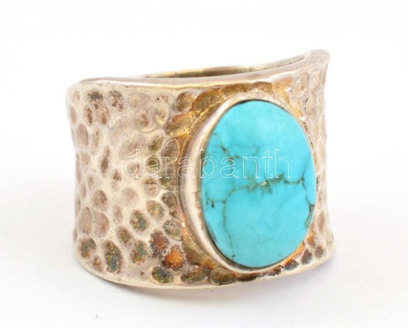Leírás: Ezüst(Ag) gyűrű, türkiz kővel, jelzetlen, méret: 59 bruttó: 12,14 g