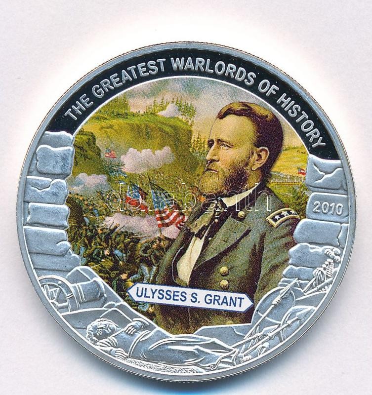 Libéria 2010. 5$ ezüstözött Cu "A történelem legnagyobb hadurai - Ulysses S. Grant" részben multicolor festéssel T:PP