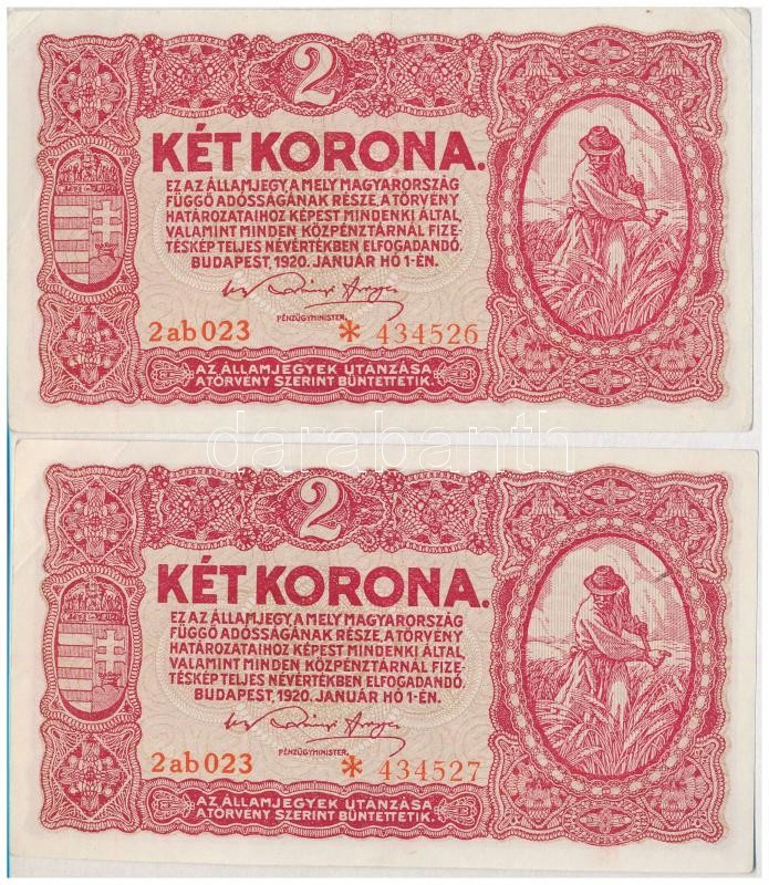 1920. 2K "2ab" (2x) csillagos sorszámmal, sorszámkövetők T:I- Adamo K7... https://www.darabanth.com/hu/375-Gyorsarveres/375.0/Numizmatika/Magyar-bankjegyek~2000007/1920-2K-2ab-2x-csillagos-sorszammal-sorszamkovetok-TI-Adamo-K71~II2198884