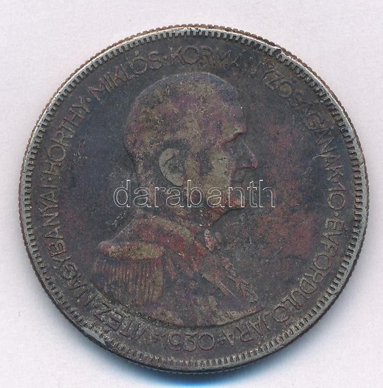 Leírás: 1930. 5P "Horthy Jobbra" Ag T:3 patina, ph. Adamo P8