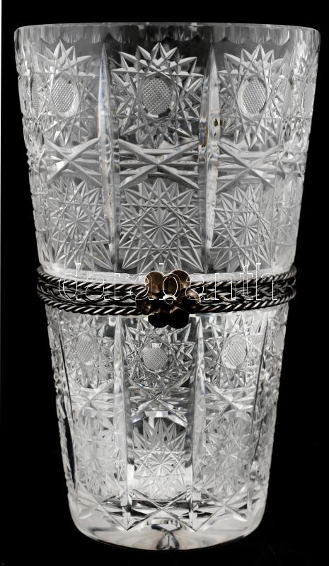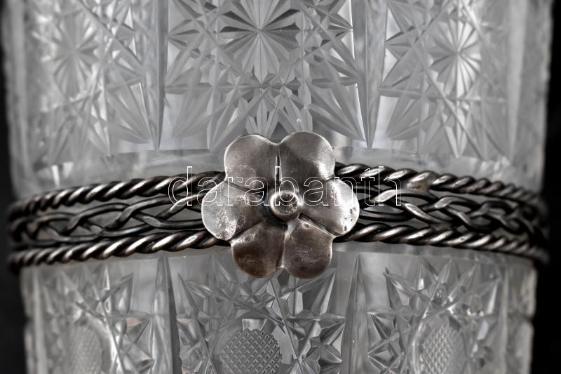 Leírás: Kristály váza ezüst díszítéssel. Hibátlan. 20 cm