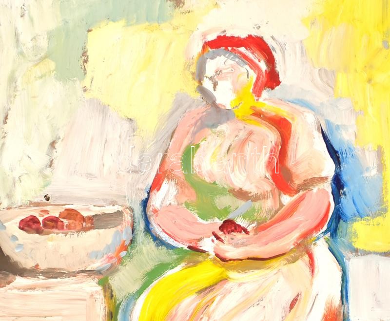 Leírás: TM jelzéssel: Ülő hölgy. Olaj, farost. 72,5×54,5 cm