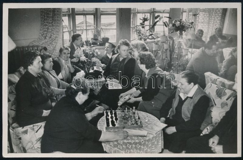 Leírás: Sakkozó hölgyek. Tiszavölgyi József (1909-?) pecséttel jelzett fotója 10x15 cm