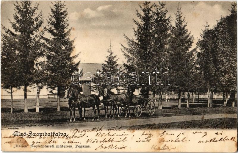 1904 Alsószombatfalva, Alsó-Szombatfalva, Sambata de Jos; Brukenthal-k... https://www.darabanth.com/hu/376-Gyorsarveres/376.0/Kepeslapok/Erdely~1500005/1904-Alsoszombatfalva-Also-Szombatfalva-Sambata-de-Jos-Brukenthal-kastely-lovaskocsival-Heli~II2144582