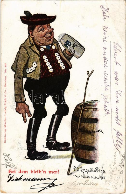 Leírás: 1901 Bei dem bleib'n mer! / Hofbrau beer humour art postcard. Ludwig Frank & Co. No. 833. s: P.O. Engelhard (EB)
