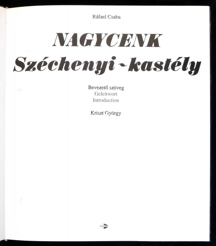 Ráfael Csaba: Nagycenk. Széchényi-kastély. Kriszt György bevezetőjével... https://www.darabanth.com/hu/376-Gyorsarveres/376.0/Konyvek/Konyvek-Utazas-helytortenet~1000001/Rafael-Csaba-Nagycenk-Szechenyi-kastely-Kriszt-Gyorgy-bevezetojevel-Bp-1990-MTI-Kiad~II2167133