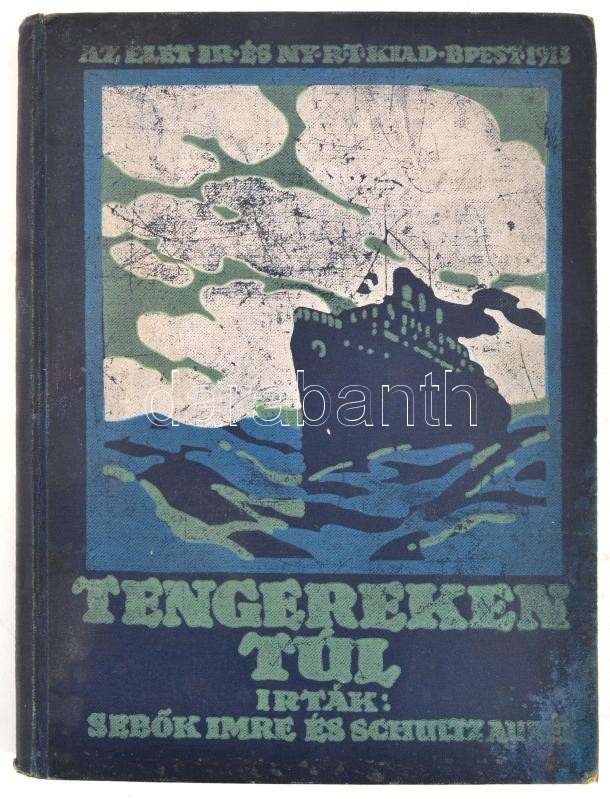 Leírás: Sebők Imre-Schultz Aurél: Tengereken túl. Bp., 1913, "Élet", 197+9 p. Szövegközti és egészoldalas fekete-fehér fotókkal. Kiadói festett, illusztrált, egészvászon-kötés, Kiss Valdemár-kötés, kopott, foltos borítóval.