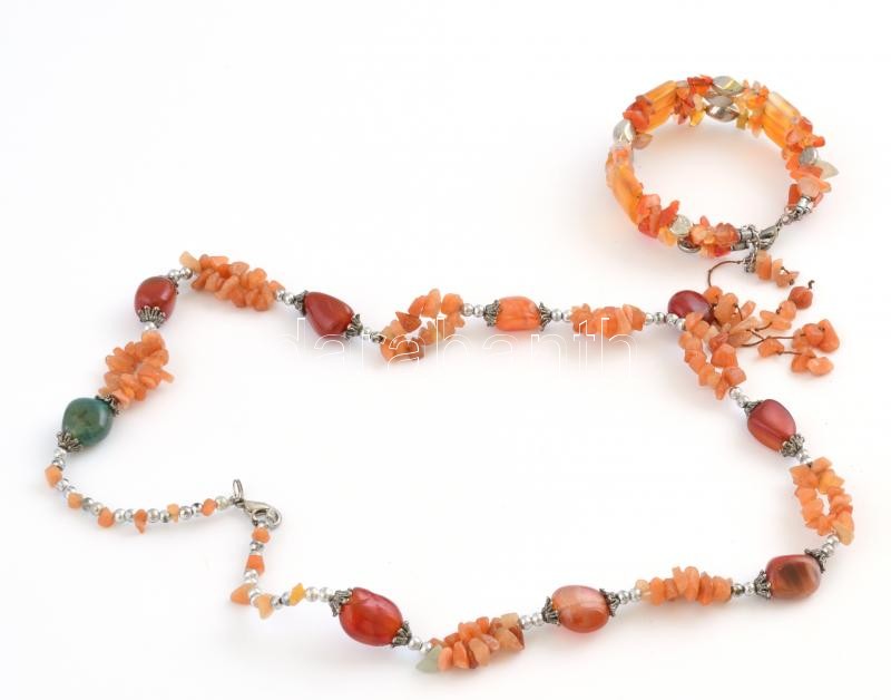 Leírás: Borostyán, hematit szett: karkötő és nyaklánc